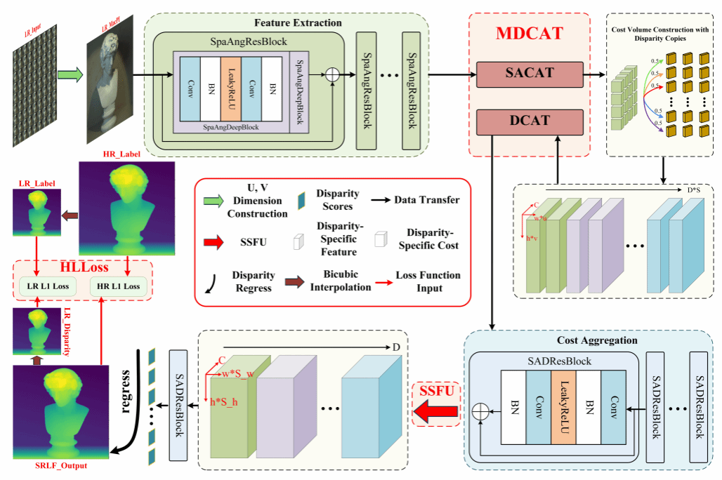 该论文所提出的端到端光场图像超分辨深度估计架构(E2SRLF),聚焦现有光场图像低空间分辨率痛点,有针对性地解决了现有方法仅能从低分辨率光场图像中生成同等低分辨率的视差图,无法直接生成高分辨率视差图这一难题。此研究可以从低分辨率光场图像中直接生成高分辨率视差图,为三维重建和虚拟现实等领域对高分辨率视差图需求提供了可行的解决方案。
